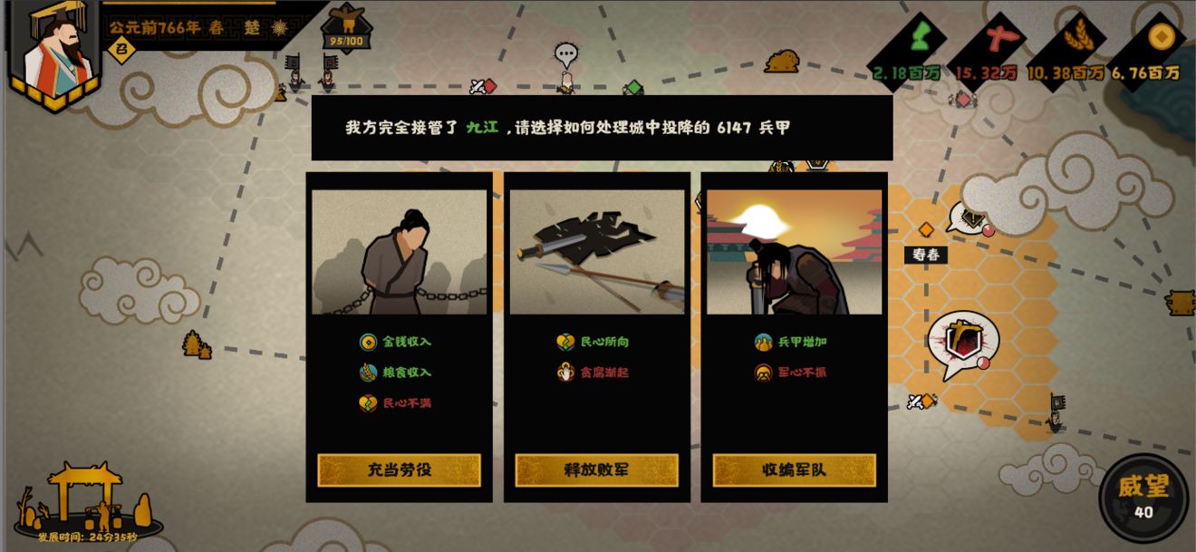 而在其他部分,我们也加入了更多的选择比如,在占领城市之后可以对俘兵进行不同的处理方式(坑杀!?这个就先不要想了…会被和谐的)