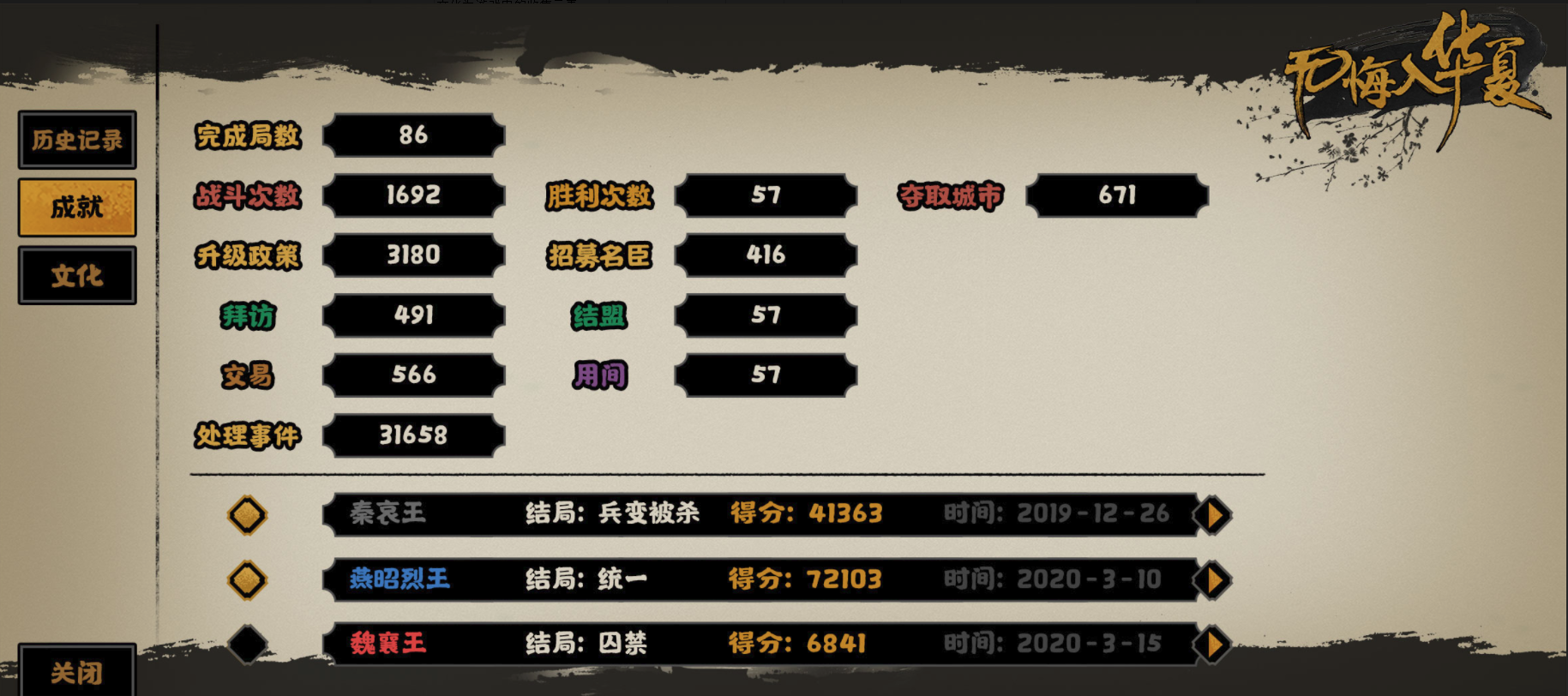 对于后期枯燥无聊的统一生活,我们还做了一些其他的玩法,比如俘虏,比如开门献城,就不一一细说了。