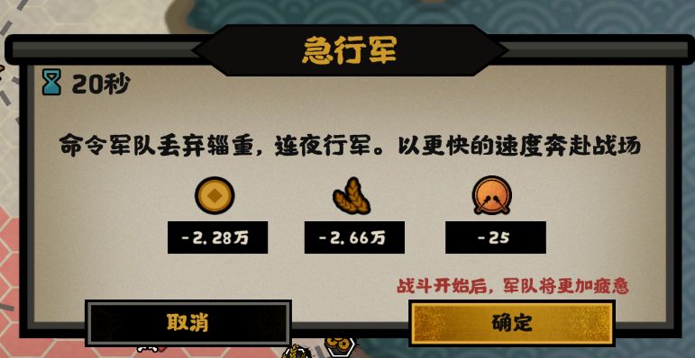 想更快的到达战场,现在可以花费一定的代价,来进行急行军了。